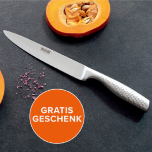 Das hochwertige Küchenmesser von Thomas Rosenthal ist für höchste Ansprüche gedacht. Es eignet sich perfekt zum Schneiden aller Arten von Lebensmitteln. Das Messer ist ganz aus rostfreiem Edelstahl gefertigt. Das Messer erhalten Sie als Dankeschön GRATIS dazu, wenn Sie »La Cucina Italiana. Die neue Landküche Italiens« bei uns im Shop in den Warenkorb legen.