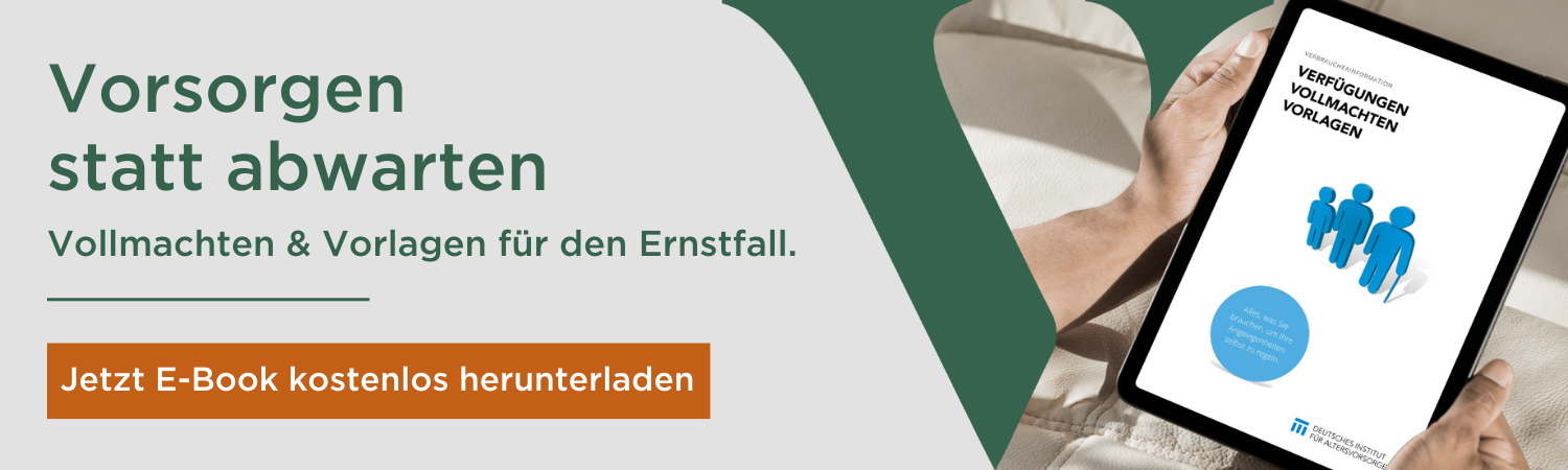Zur Unterstützung dieser Vorkehrungen hat das Deutsche Institut für Altersvorsorge (DIA) seine Ratgebermappe „Verfügungen, Vollmachten, Vorlagen“ aufgelegt. Umfangreich wird beschrieben, wie mit Vorsorgevollmacht, Betreuungsverfügung, Patientenverfügung und Kontovollmacht Rechtssicherheit für den Ernstfall geschaffen wird.